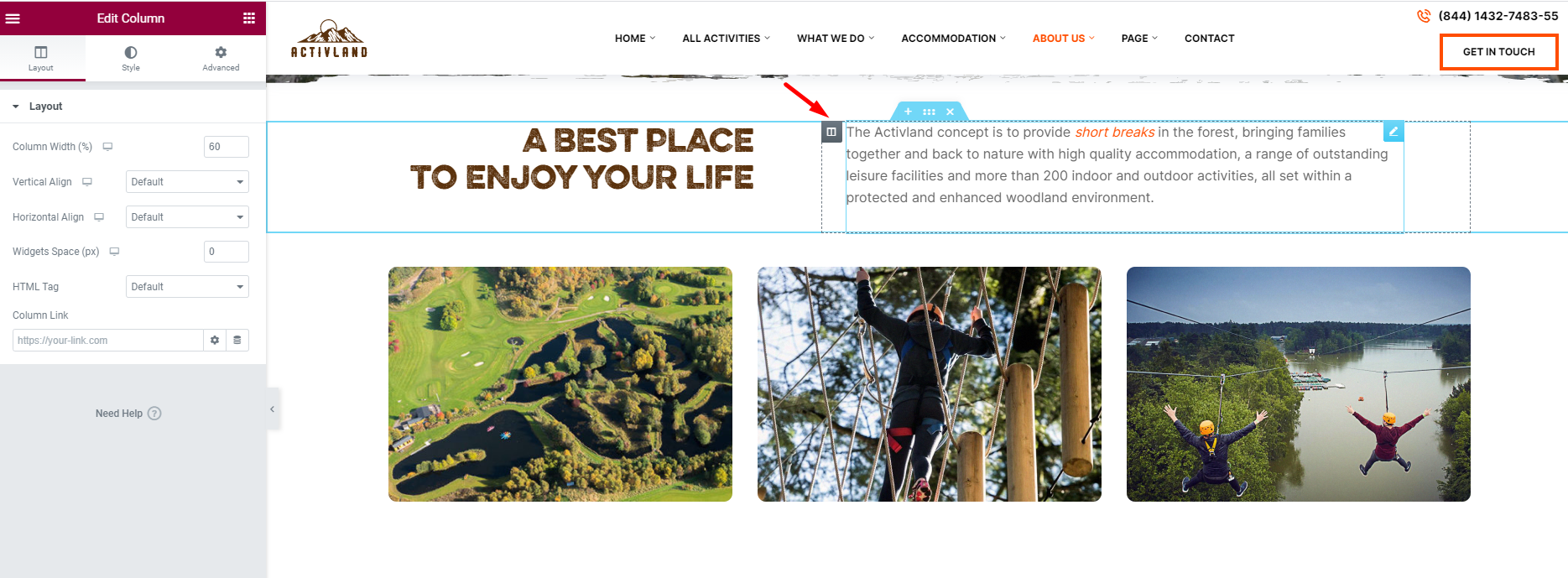 Step 3 - To change the Row layout ( number of columns ) you need to click button content will display in leftsidebar.