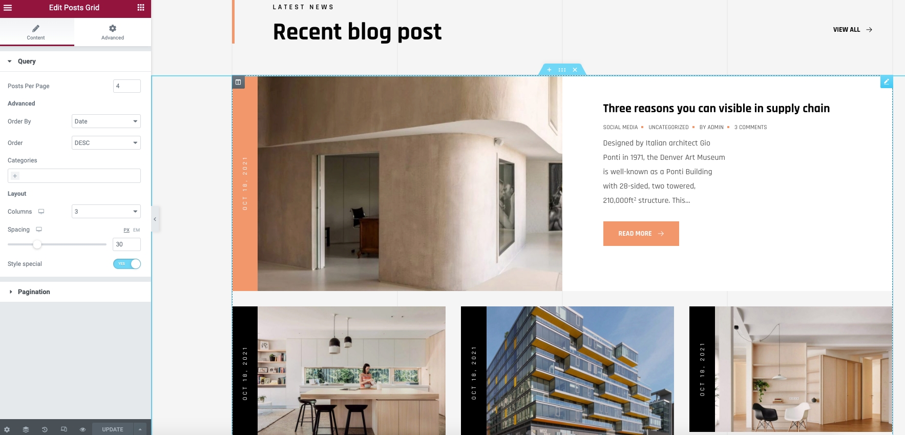 Step 4 - Start filling in the blanks: enter your post title in the upper field , you can add content of post by use elementor to create.