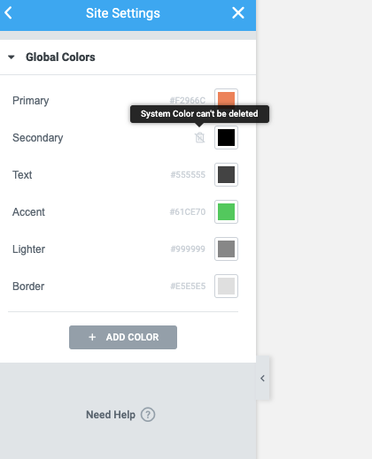 Step 2 - Site Settings >> Global Colors >>