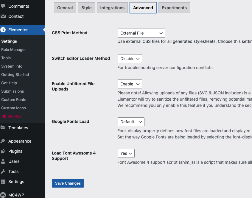 Elementor config