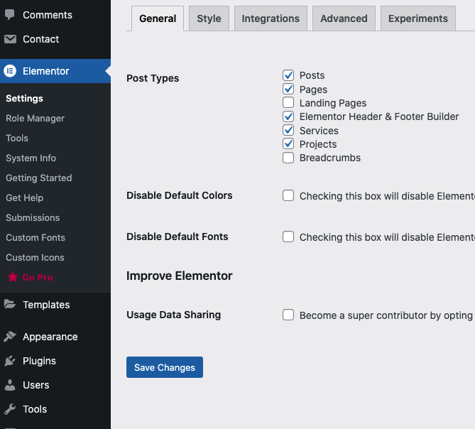 Step 4 - You will see all tabs for the setting of elementor , in General tab