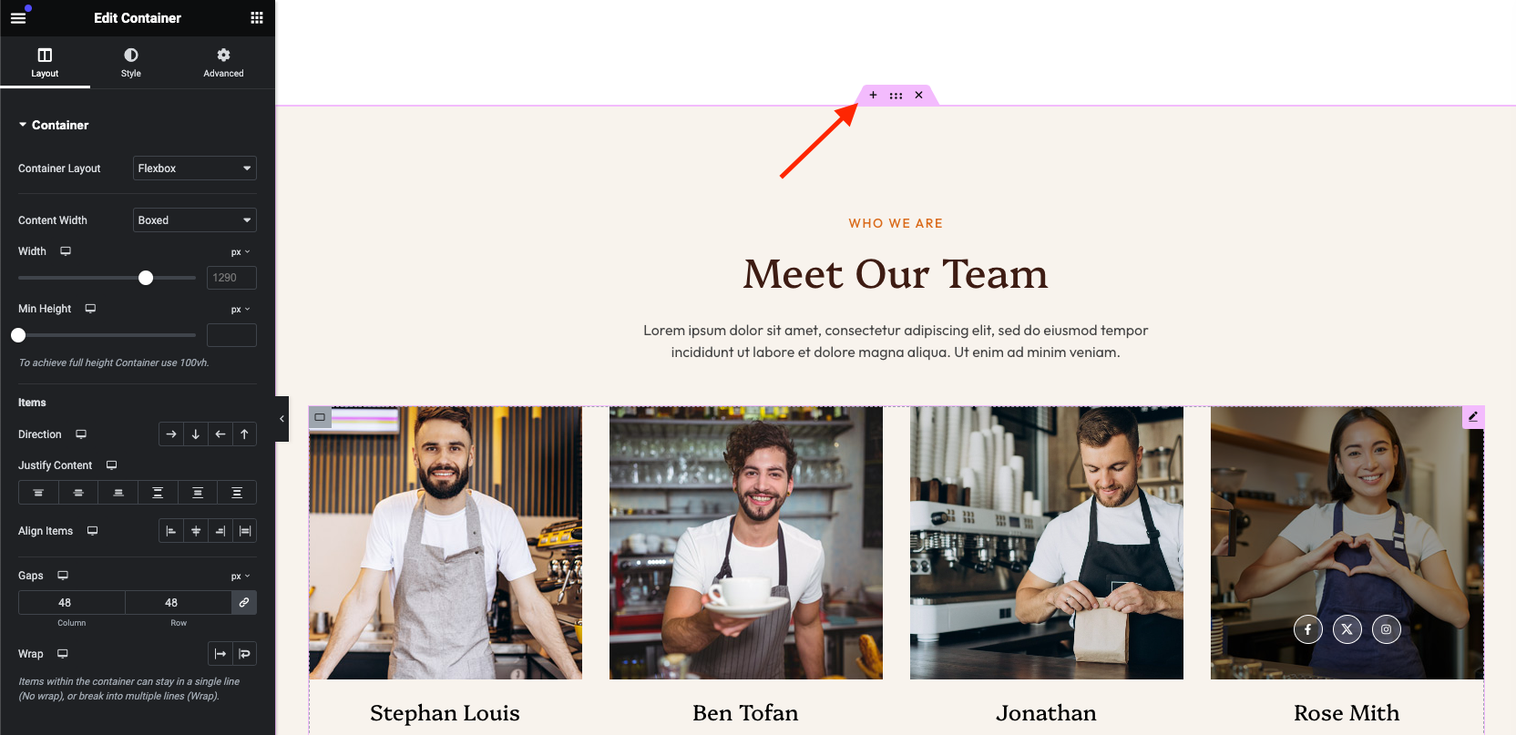 Step 3 - To change the Row layout ( number of columns ) you need to click the button content will display in the left sidebar.