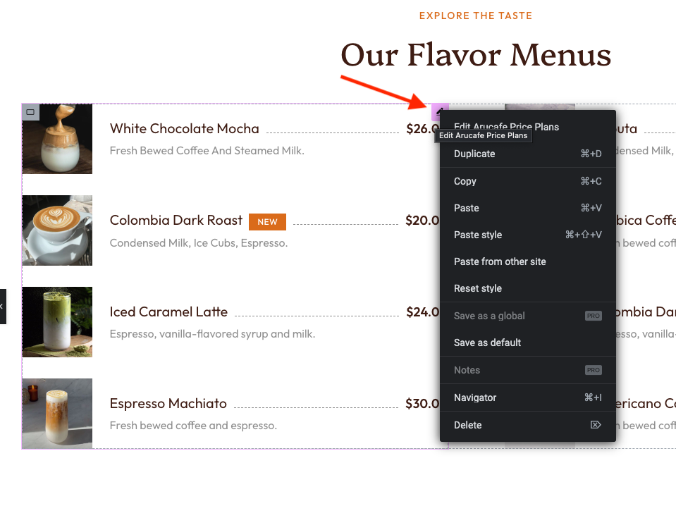 Click on the Edit This Element (pencil icon) to Edit the Row element, when you click on to button all content will display in the left sidebar follow you can change it.