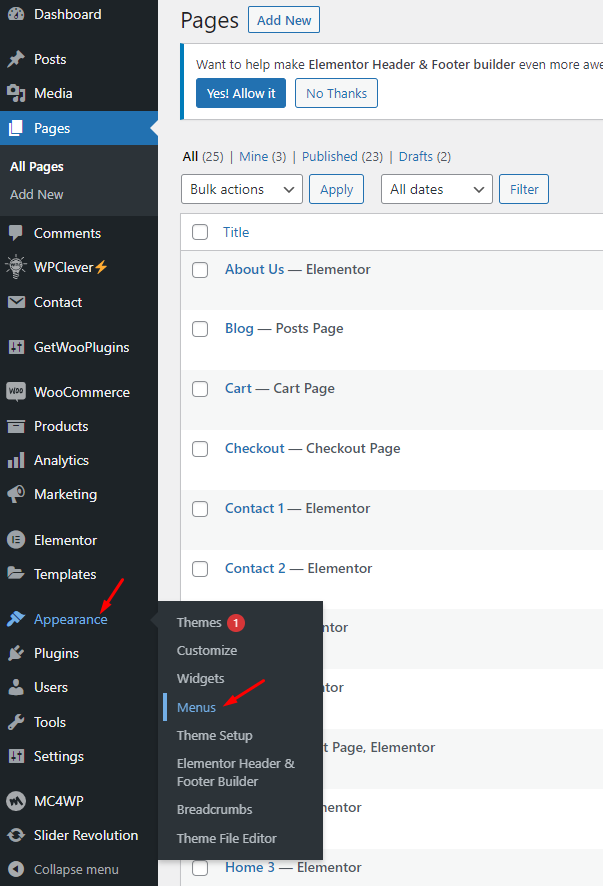 Step 1 - Navigate to manager Menu: Appearance > Menu.