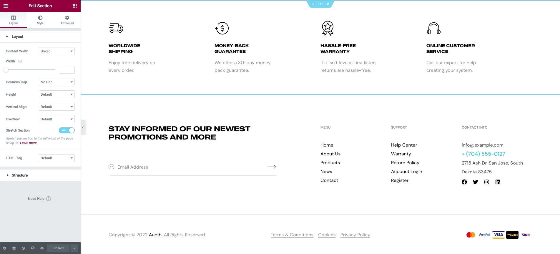 By bringing the power of the Elementor editor to the header/footer areas, you can design them any way you like, be full-width included, and be able to complete projects faster than ever. You can also save header and footer templates, and reuse them on any other project.