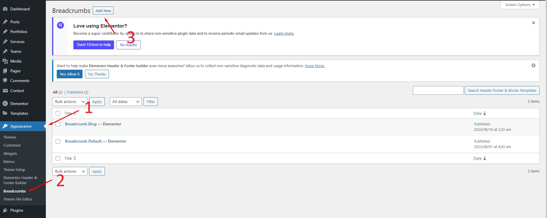 Step 1 - Go to WordPress Dashboard > Appearance > Breadcrumb > Add New