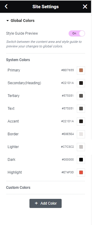 Step 2 - Site Settings >> Global Colors >>