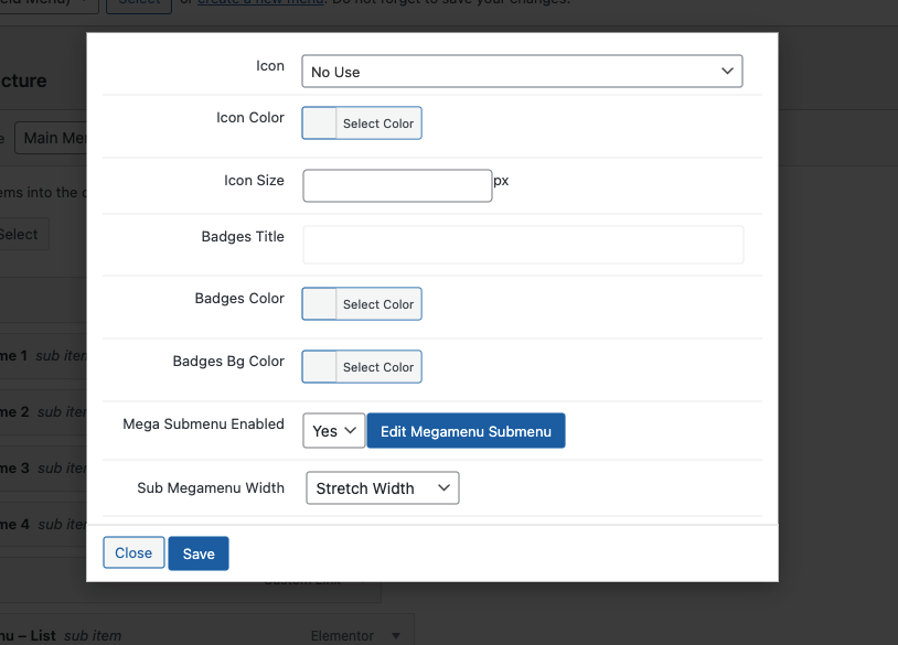 Step 5 - Click Edit Megamenu Submenu then a new window will appear. You can build a Mega menu by Elementor. After finishing click Update and click.