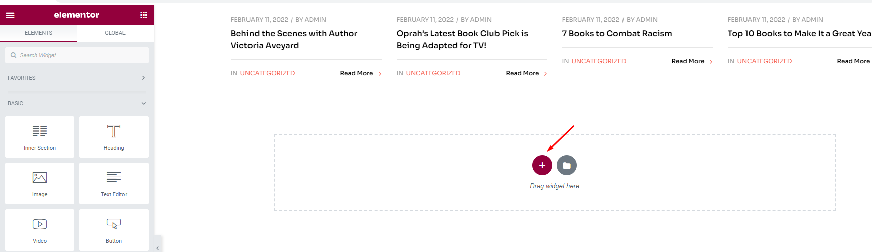 Step 3 - Using Elementor backend editor Bookory then add element to your Template.