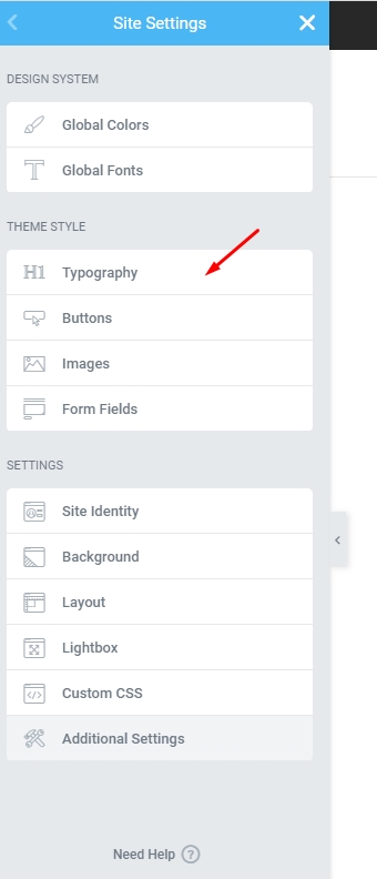 Step 3 - Settings Typography for your site