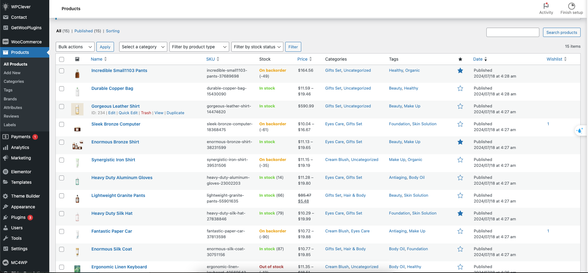 In the WordPress admin go to Products and then click on one of your products