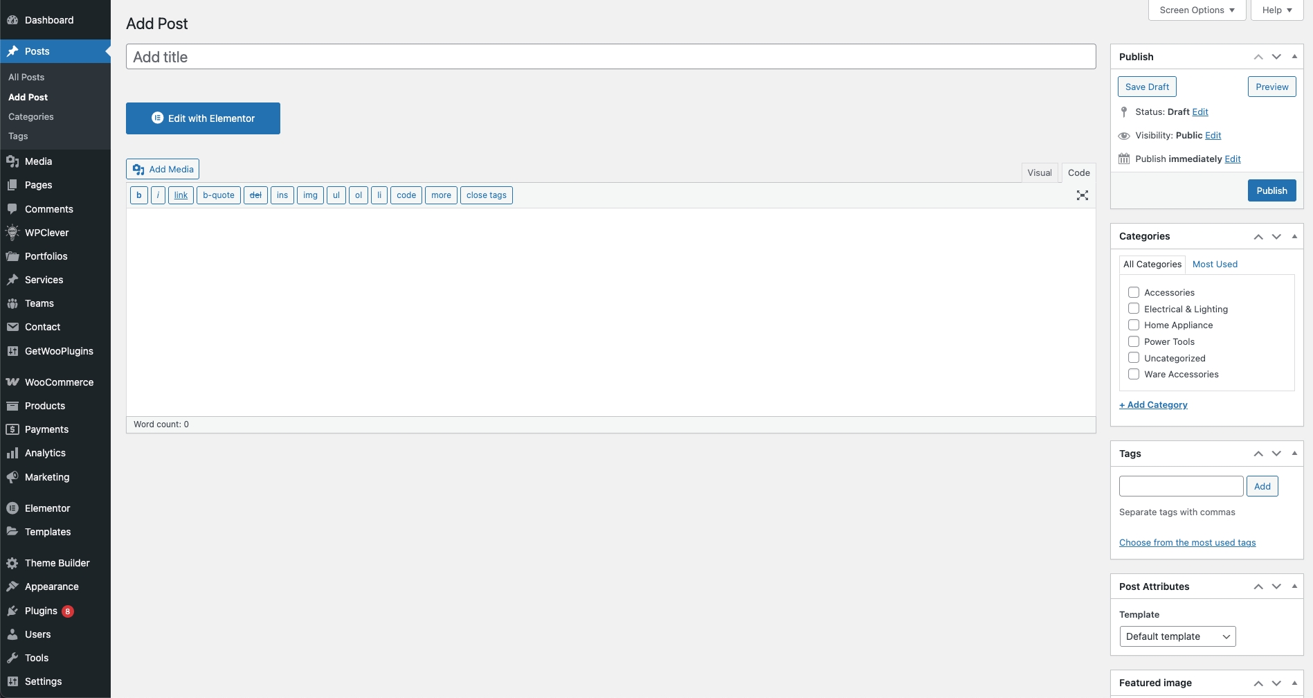 Step 4 - Start filling in the blanks: enter your post title in the upper field, you can add the content of the post by us elementor to create.