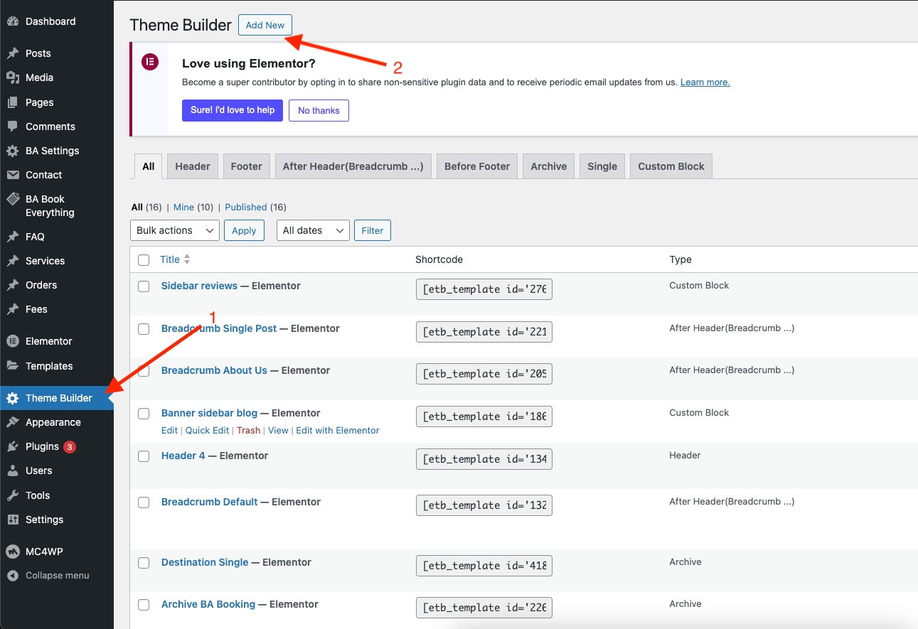 Step 1 - Go to WordPress Dashboard > Theme Builder > Add new > Edit with Elementor