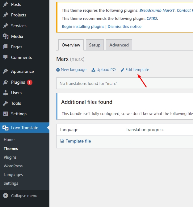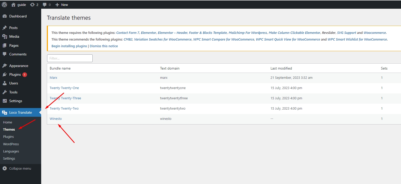 When you’re ready, go to Loco Translate -> Themes and you will see a list of all installed themes on your website.