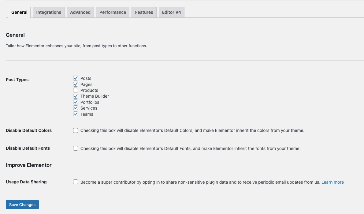 Step 4 - You will see all tabs for setting of elementor , in General tab
