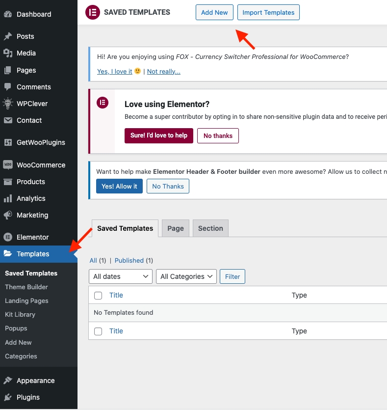 Step 1 - From the admin Dashboard, navigate to Templates.