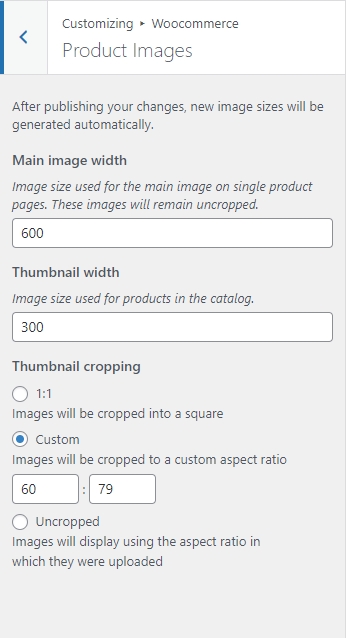 • Set Image size used for products in the catalog.