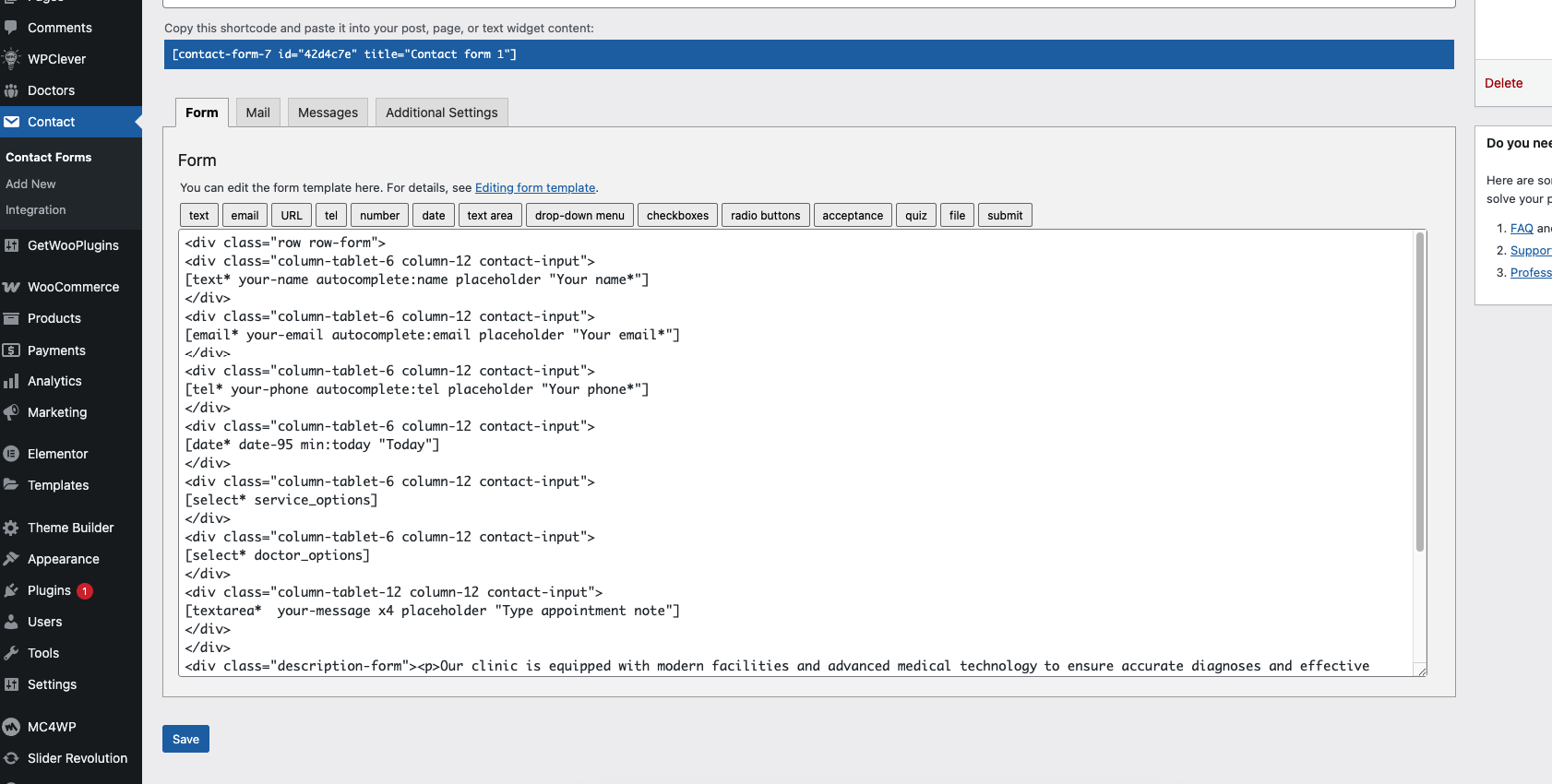 Step 2 - After installing this plugin, go to Contact > Contact Forms > Add New/ Edit a Contact Form and use the following this mark-up and paste it to your form( Of course, you can edit the text "Name", "Email", "Subject", "Your Message", "Submit" to the text as you want ):