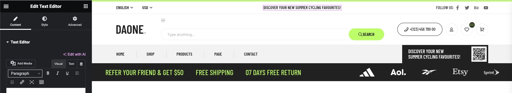 By bringing the power of the Elementor editor to the header/footer areas, you can design them any way you like, full-width included, and be able to complete projects faster than ever. You can also save header and footer templates, and reuse them on any other project.