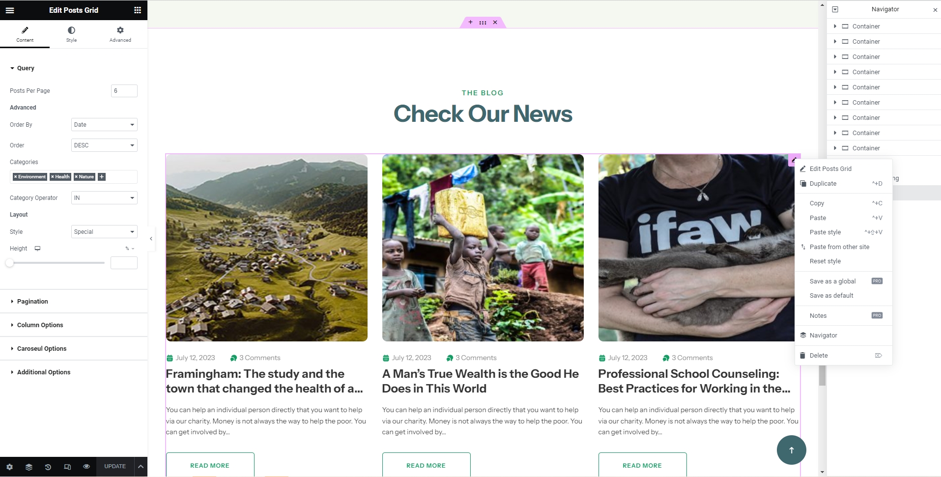 One page always includes a lot of parts like the Header, Main Page, Widget Sidebar, and Footer. In that section, we guide you to create the Main page by using Elementor.