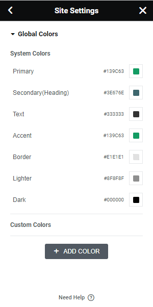 Step 2 - Site Settings >> Global Colors >>