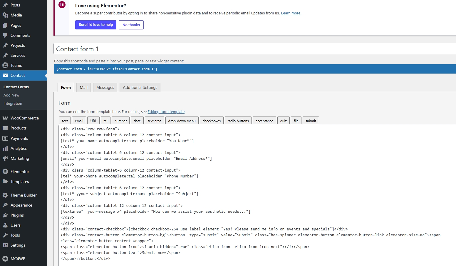 Step 2: After installing this plugin, go to Contact > Contact Forms > Add New/ Edit a Contact Form and use the following this mark-up and paste it to your form( Of course, you can edit the text "Name", "Email", "Phone", "Your Message", "Submit" to the text as you want ):