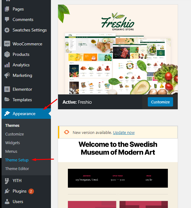 Step 2- From Appearance -> Theme Setup. This section will lead you the steps to install demo with One-click Import.