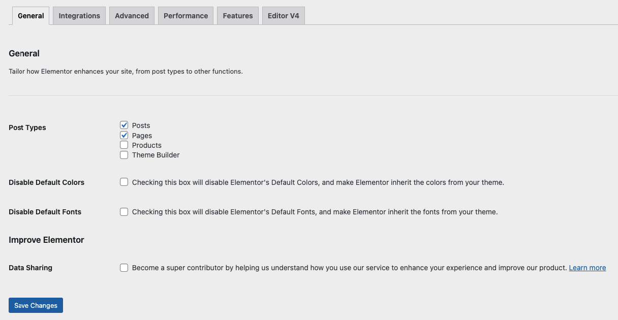 Step 4 - You will see all tabs for setting of elementor , in General tab