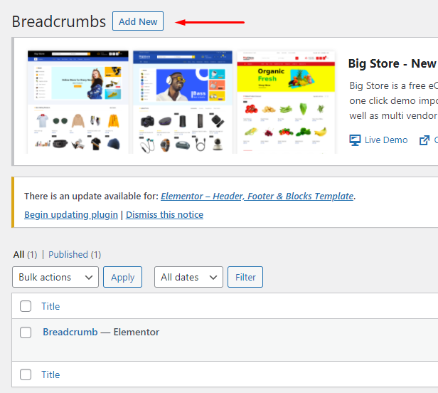 Step 2 Click ‘Add New ’ and Name your Breadcrumb template and click ‘Create Breadcrumb’ and 'update'.