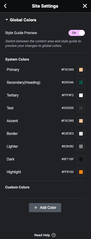 Step 2 - Site Settings >> Global Colors >>