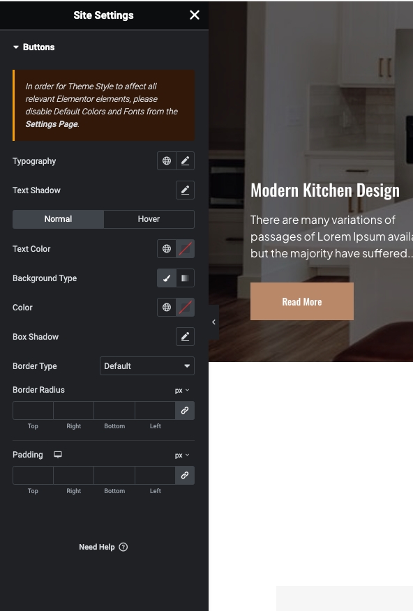 Step 2 - Site Settings >> Button >>