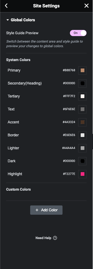 Step 2 - Site Settings >> Global Colors >>