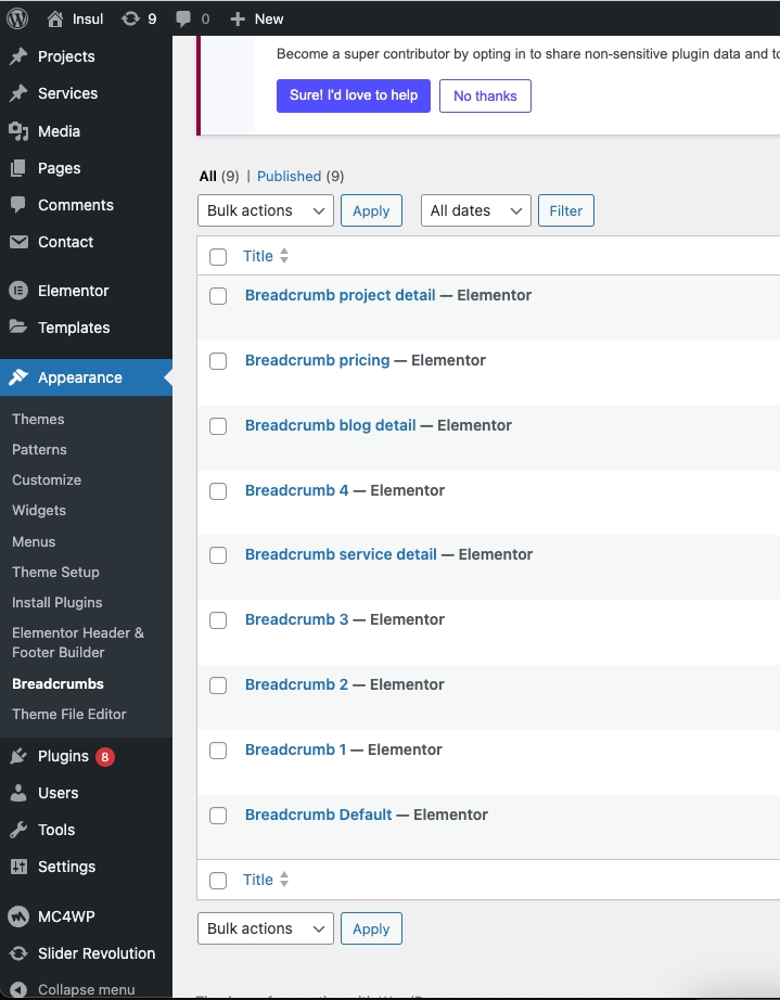 Step 1 - Go to WordPress Dashboard > Appearance > Breadcrumb > Add New