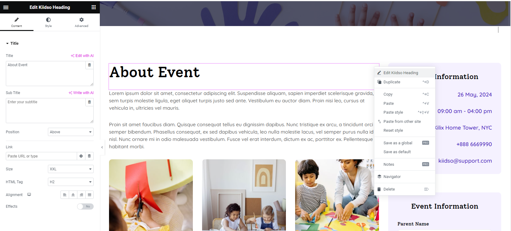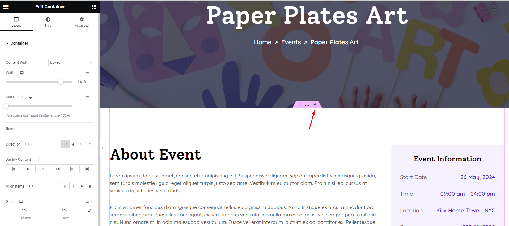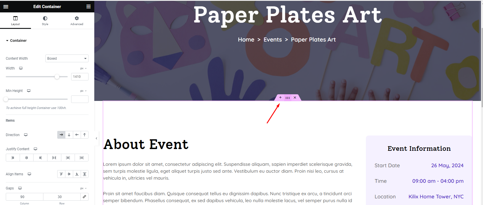 One page always includes a lot of parts like the Header, Main Page, Widget Sidebar, and Footer. In that section, we guide you to create the Main page by using Elementor.