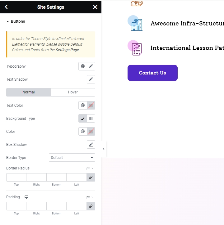 Step 2 - Site Settings >> Button >>