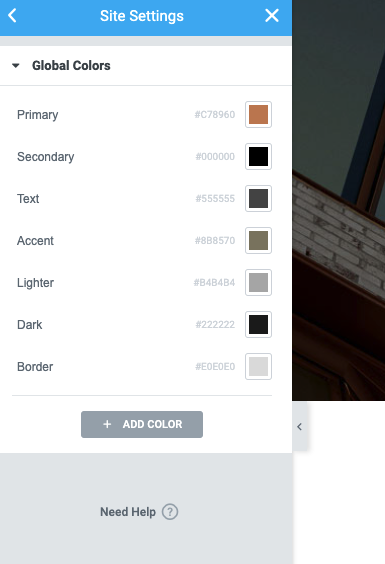 Step 2 - Site Settings >> Global Colors >>