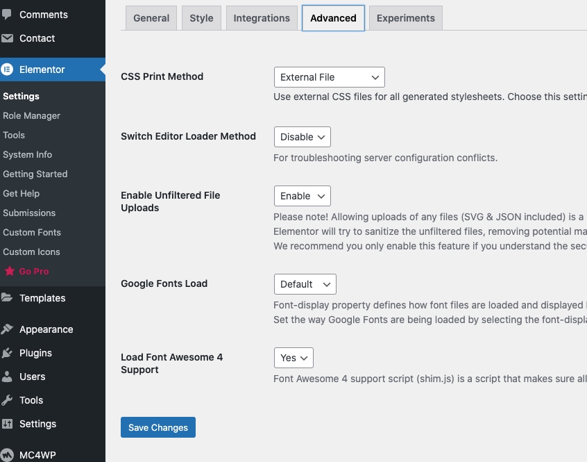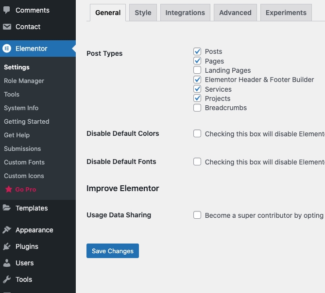 Step 4 - You will see all tabs for the setting of elementor , in General tab