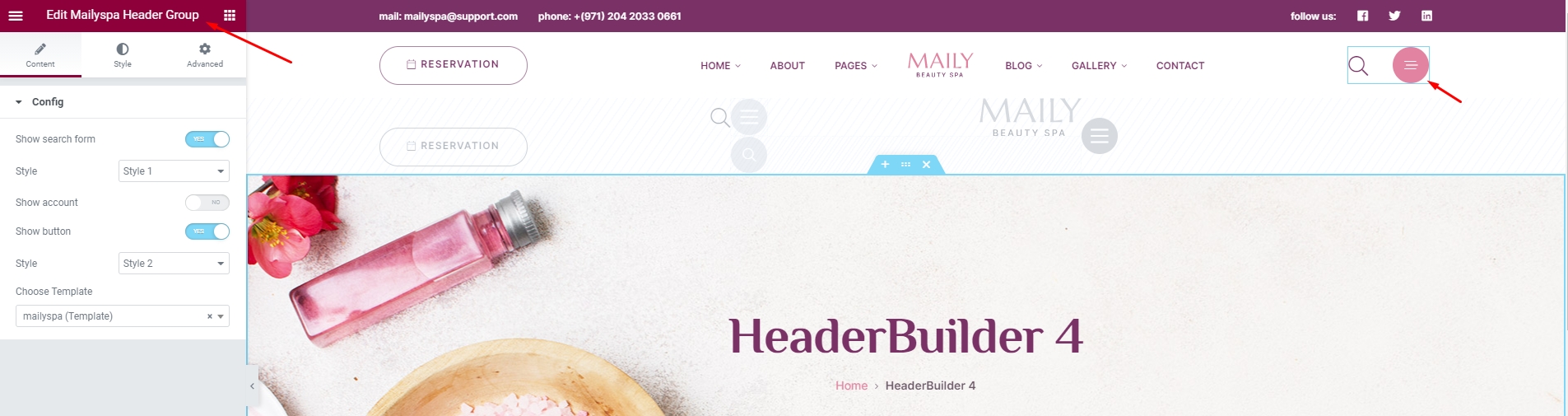 Step 9 Once you have made the needed changes to the header design, click ‘Update’, and choose where to Display Conditions.
