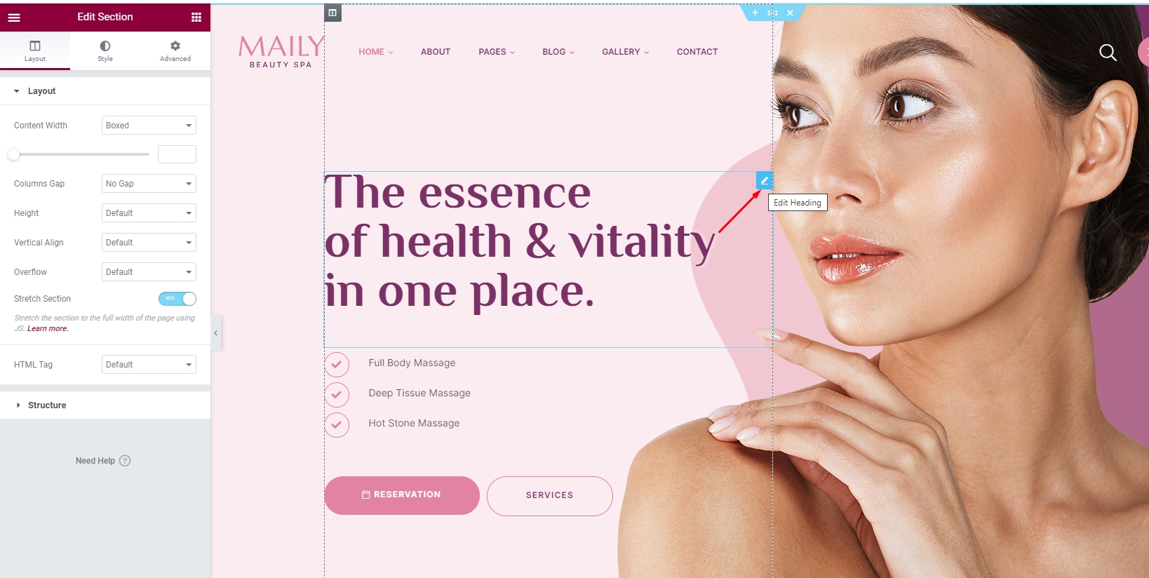 Click on the Edit This Element (pencil icon) to Edit the Row element , when you click to button all content will display in left sidebar follow you can change .