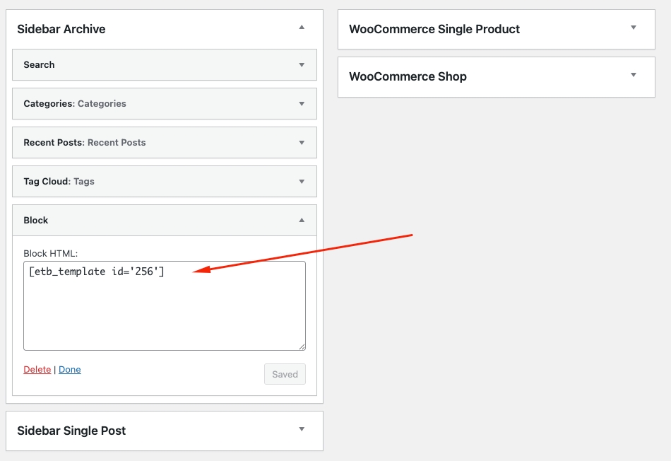 Note: If you choose the type "Custom Block", to use it you need to copy its Shortcode and paste it where you want it to display.