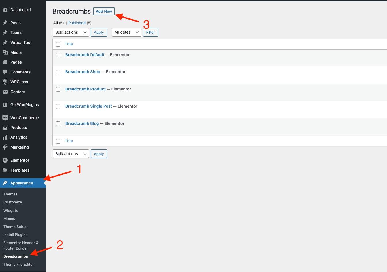 Step 1 - Go to WordPress Dashboard > Appearance > Breadcrumb > Add New