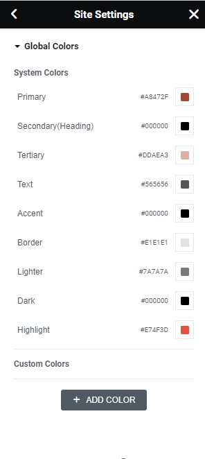 Step 2 - Site Settings >> Global Colors >>