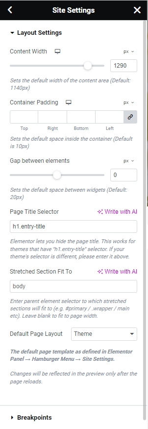 Step 2 - Site Settings >> Layout >>