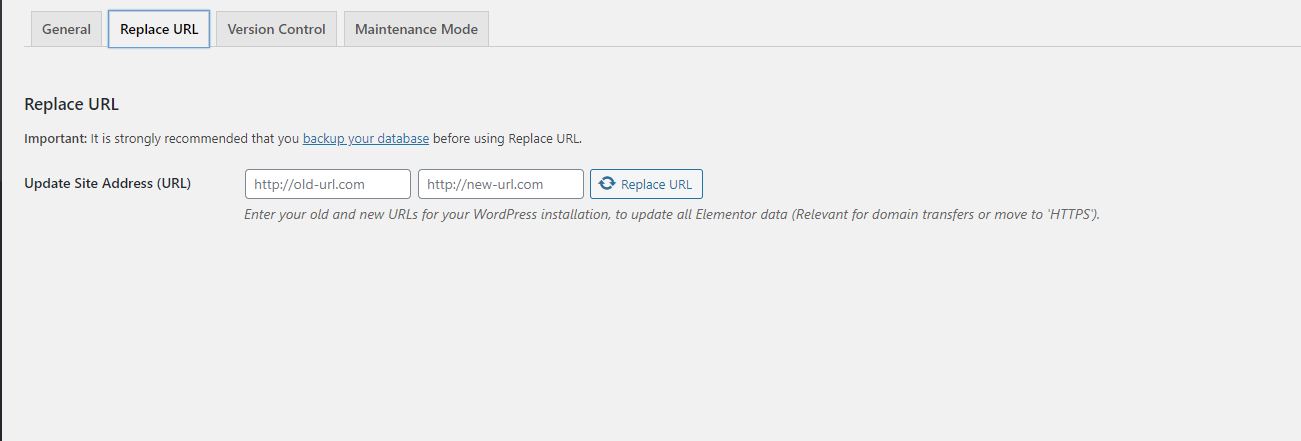 Step 5 - Editor Replace URL tab: display config for site address....
