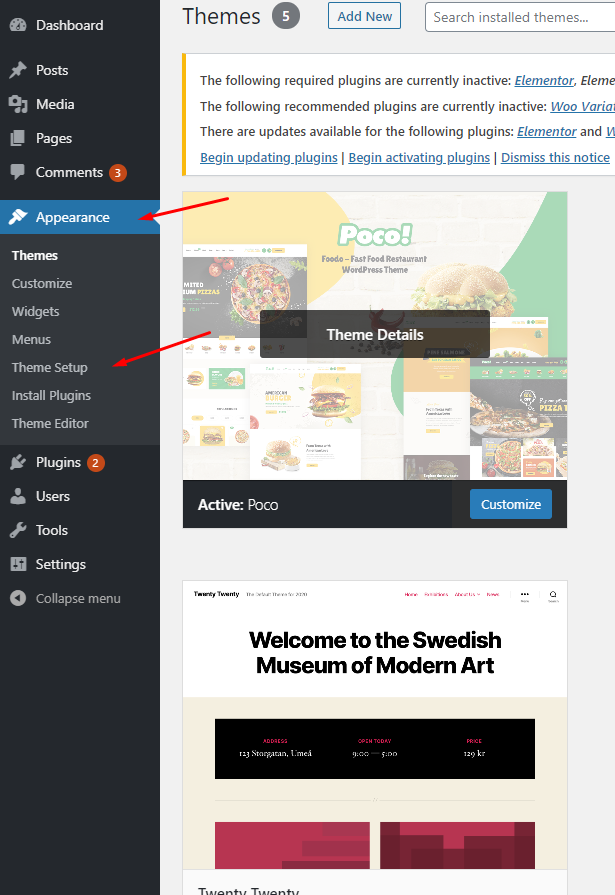 Step 2- From Appearance -> Theme Setup. This section will lead you the steps to install demo with One-click Import.