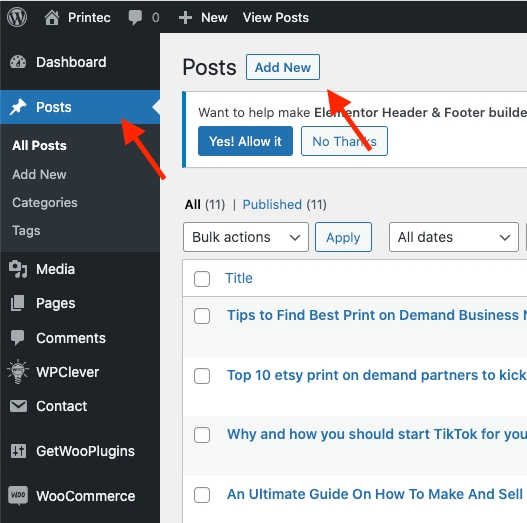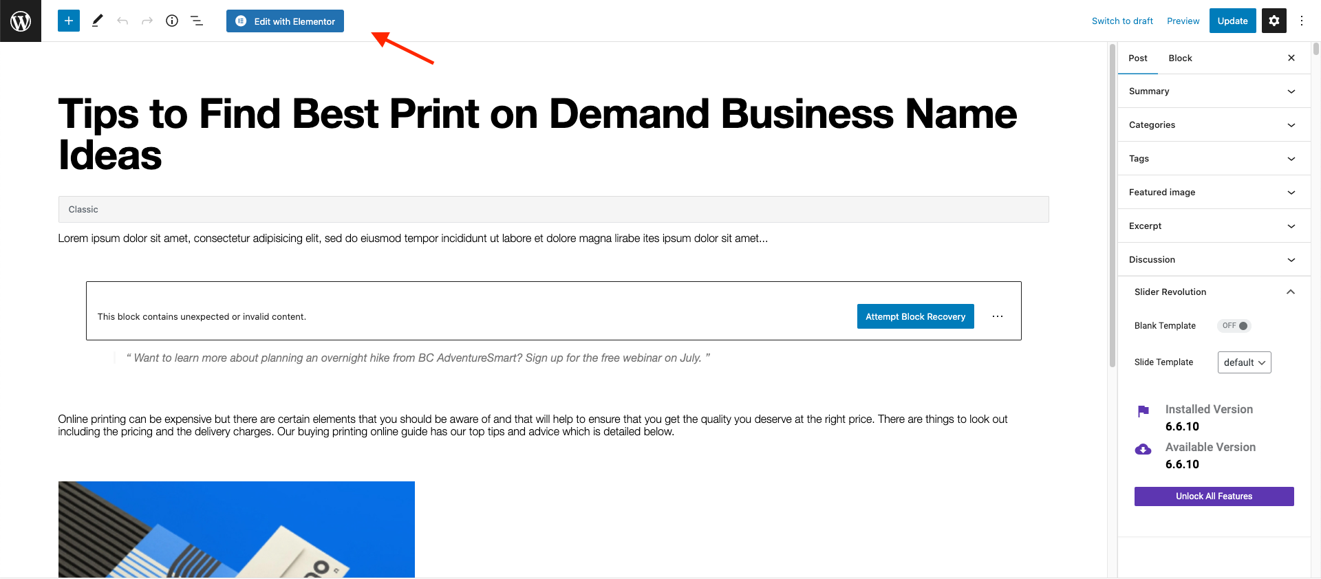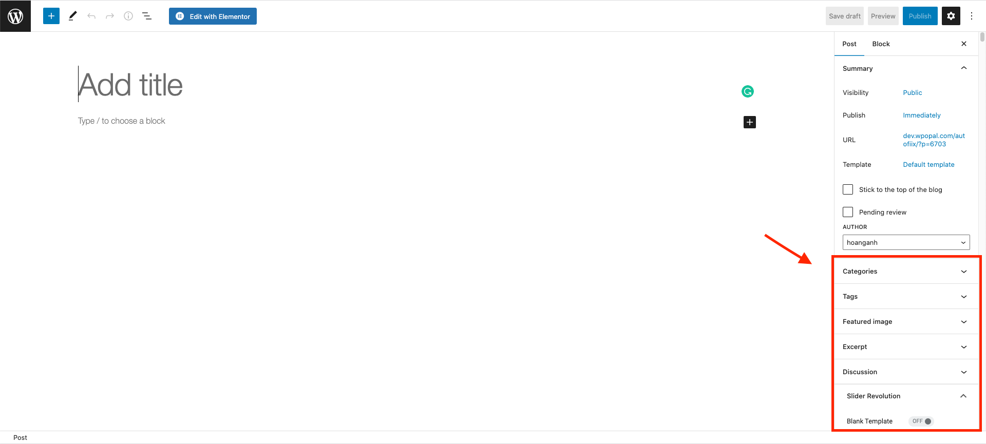 Step 4 - Start filling in the blanks: enter your post title in the upper field, you can add the content of the post by using Elementor to create.