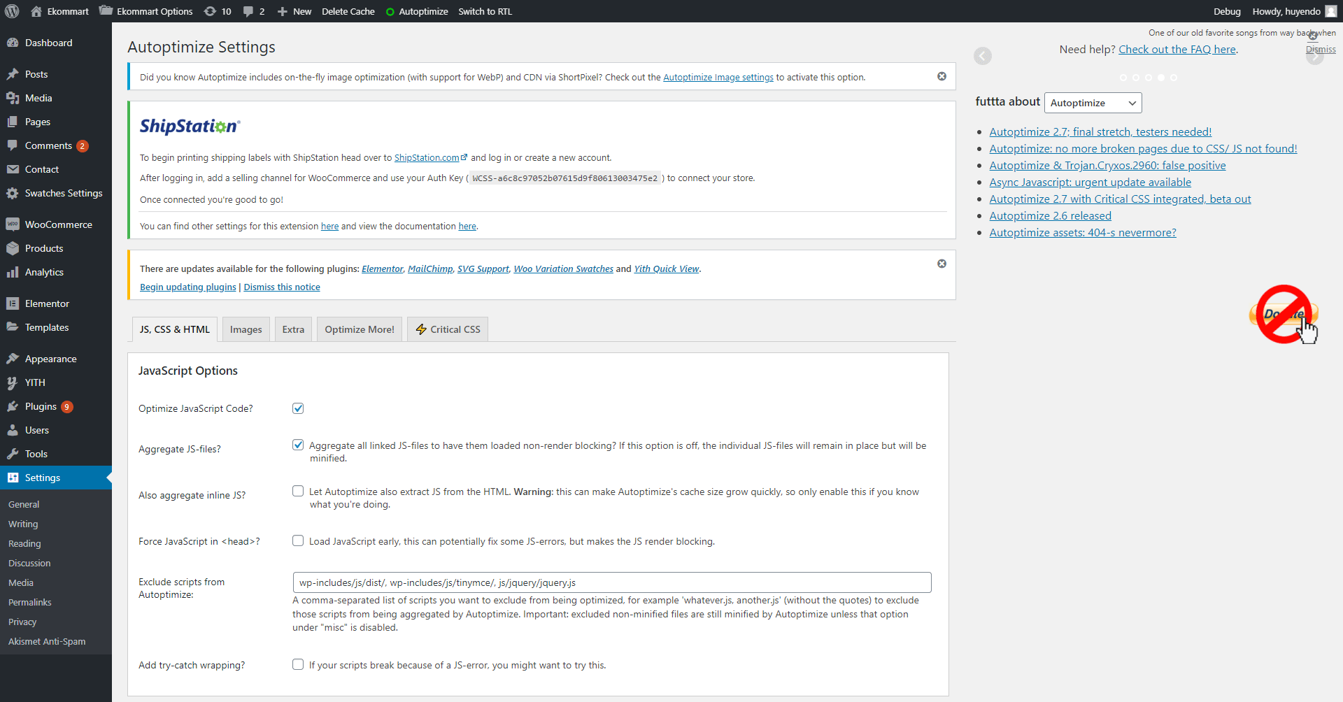 Next, go to Dashboard ->> Settings ->> Autoptimize.