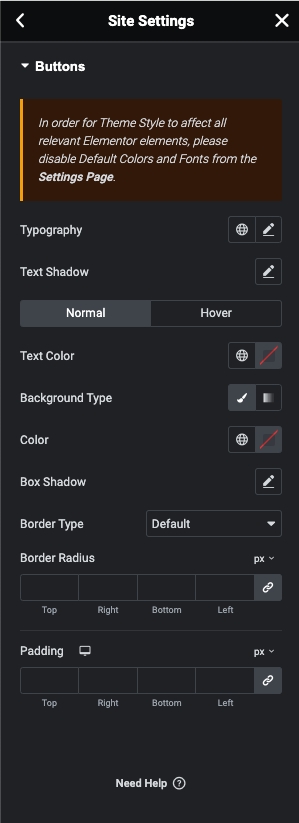 Step 2 - Site Settings >> Button >>