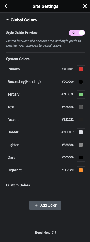 Step 2 - Site Settings >> Global Colors >>