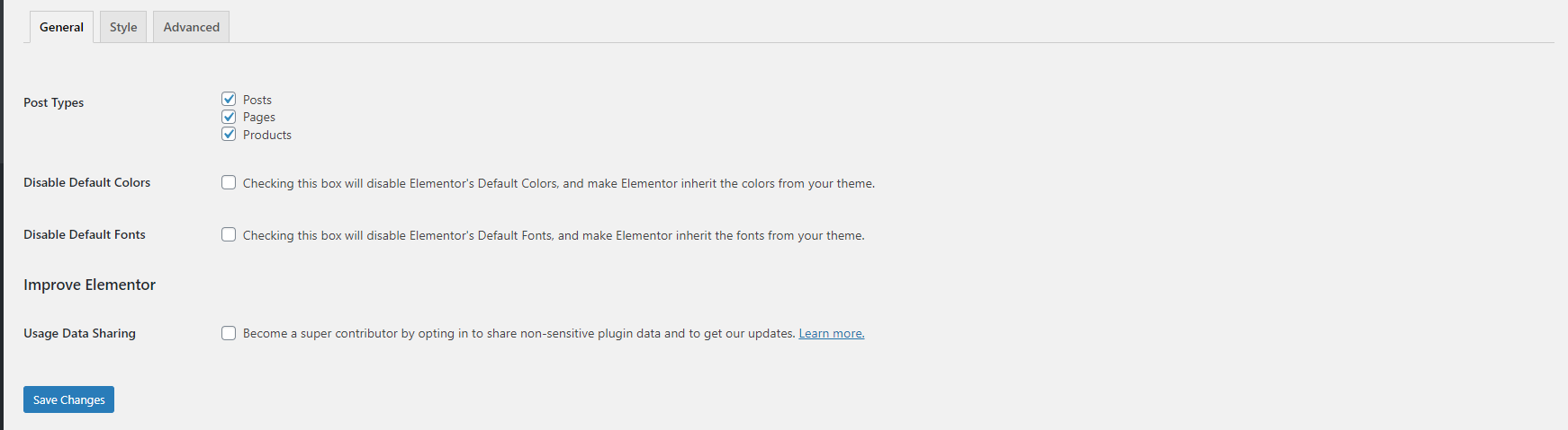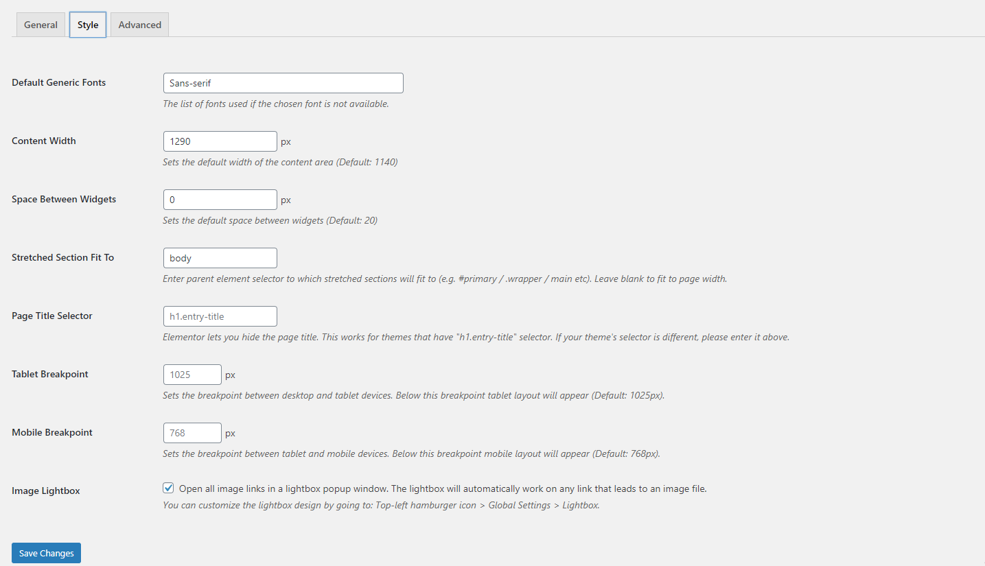 Step 4 - You will see all tabs for setting of elementor , in General tab